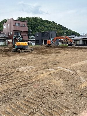 土木の工事現場では都市計画の整地工事を着々と進めています。