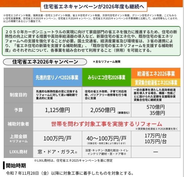 今回、住宅省エネキャンペーンが、2026年度も継続する事が